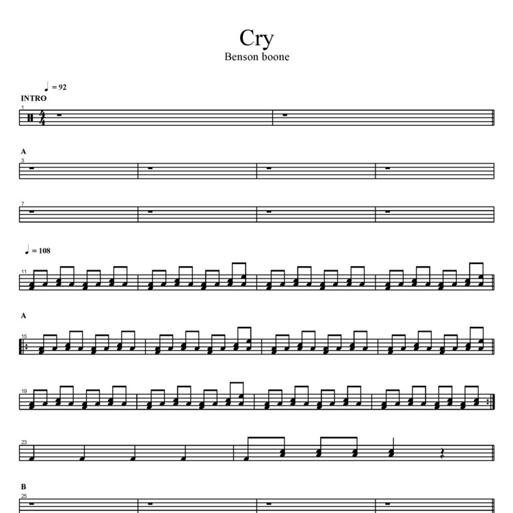 Benson boone - Cry / Drum Sheet Music (PDF Download)