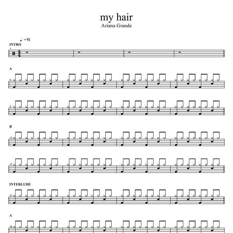 Ariana Grande - my hair / Drum Sheet Music (PDF Download)