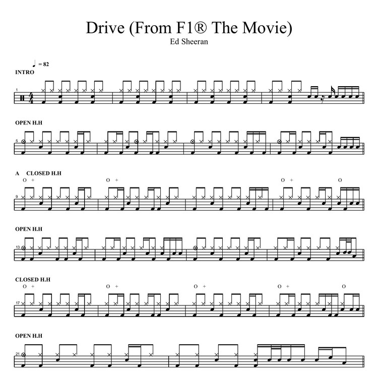 Ed Sheeran - Drive (From F1® The Movie) / Drum Sheet Music (PDF Download)