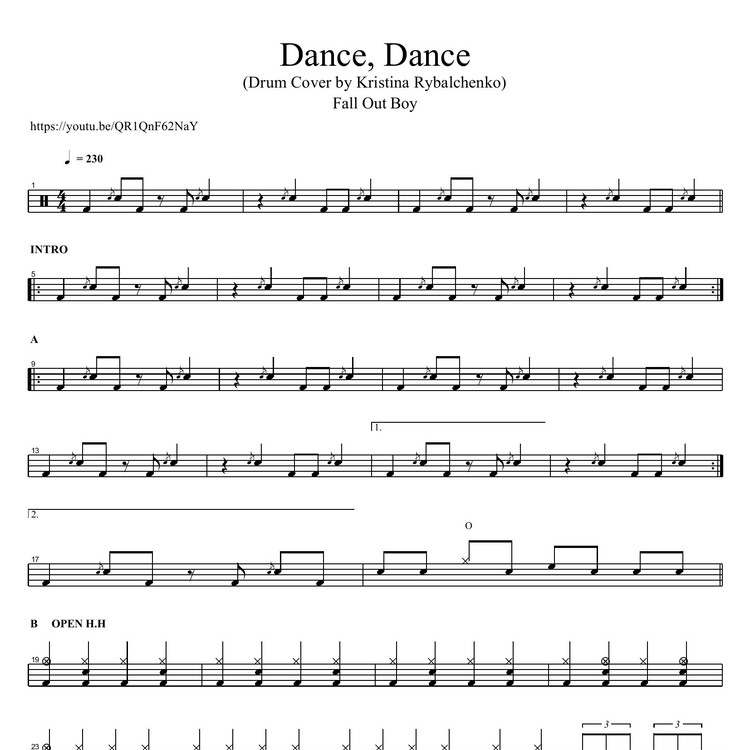 Fall Out Boy - Dance, Dance (Drum Cover by Kristina Rybalchenko) / Drum Sheet Music (PDF Download)