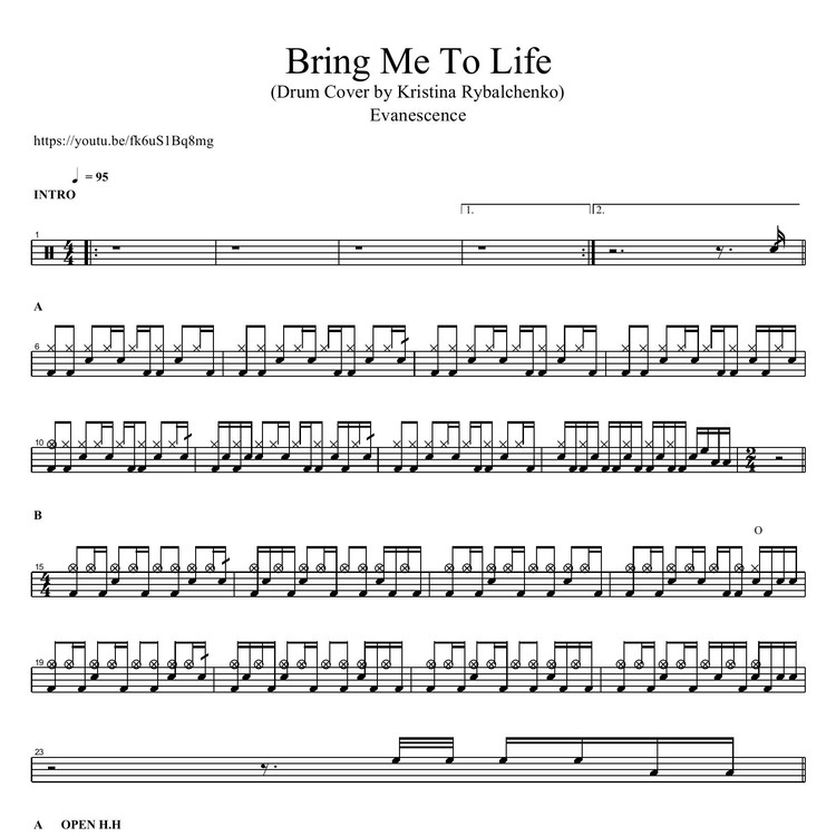 Evanescence - Bring Me To Life (Drum Cover by Kristina Rybalchenko) / Drum Sheet Music (PDF Download)