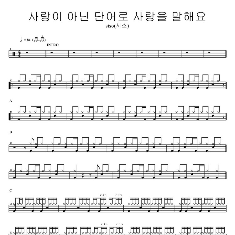 siso(시소) - 사랑이 아닌 단어로 사랑을 말해요 / Drum Sheet Music (PDF Download)