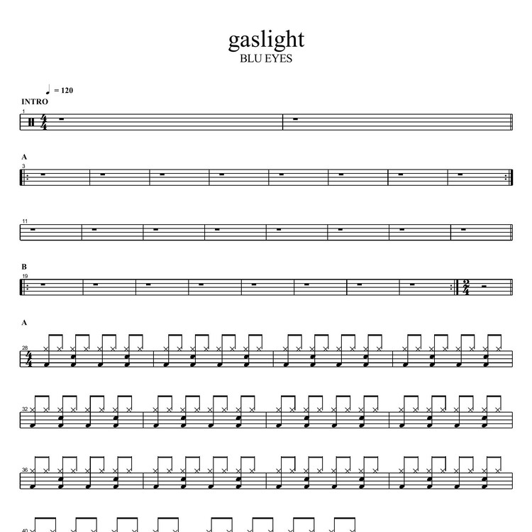 BLU EYES - gaslight / Drum Sheet Music (PDF Download)